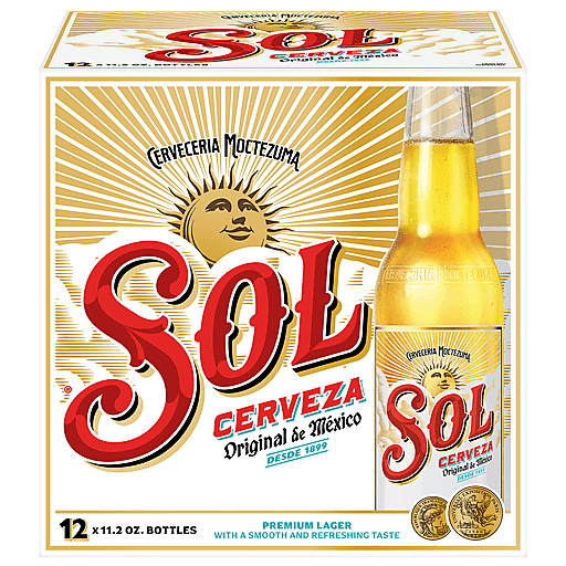 Sol Cerveza is a refreshing Mexican lager beer with 4.5% ABV. Light and easy going down, this import beer has a clean taste and smooth finish that's perfect for sessioning with friends on a sunny day. This convenient pack of light beer is always a great choice, whether you're having a rooftop party or dancing at a sun-drenched music festival. Brewed with quality malted barley and hop extract, every crisp and invigorating sip of this summer beer connects you to the positive energy of the sun. Drinking a Sol party beer feels like a Mexican ray of sunshine; it pairs beautifully with your favorite cookout fare, or use it to wash down tacos. For over 120 years, Sol's dedication to quality has been at the source of something truly unique: the opportunity to taste the sun. Legend has it that as the master brewer bottled the first batch of an experimental new recipe, it was illuminated by a ray of sunlight and he decided to name it “El Sol." It was in early 1900 that the brand became the now iconic "Sol."