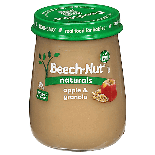 Beech-Nut Naturals Baby Food is made with simple, non-GMO ingredients. Our apple & granola baby food puree has no artificial preservatives, colors or flavors and no added sweeteners--just what you'd expect for baby's first foods. Our fruits and veggies are gently cooked to preserve color, flavor, and nutrients to create a puree that's perfect for introducing solids. Free of the following allergens: dairy, peanut, soy, egg. This Stage 2 baby food jar is ideal for babies 6 months and up.
