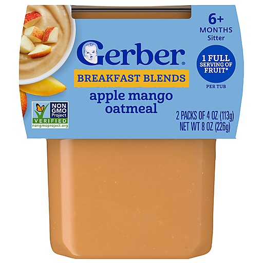 Gerber Sitter (6+ Months) Breakfast Blends Apple Mango Oatmeal 2 ea