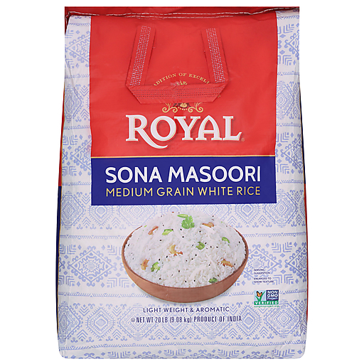 Royal Sona Masoori Medium Grain White Rice 20 lb