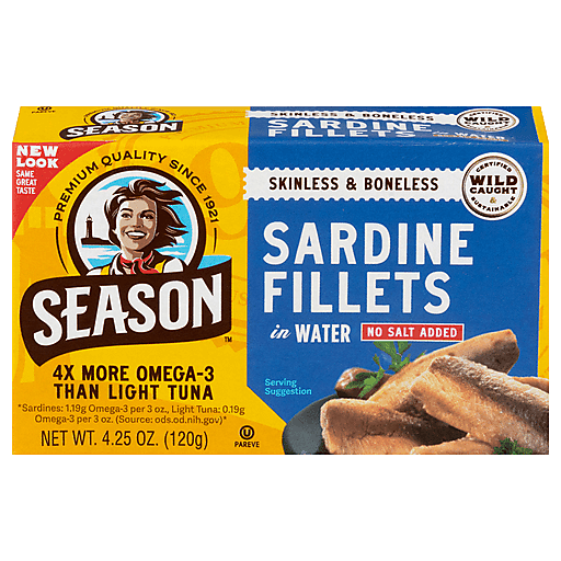 Season Skinless & Boneless Sardine Fillets In Water 4.25 oz